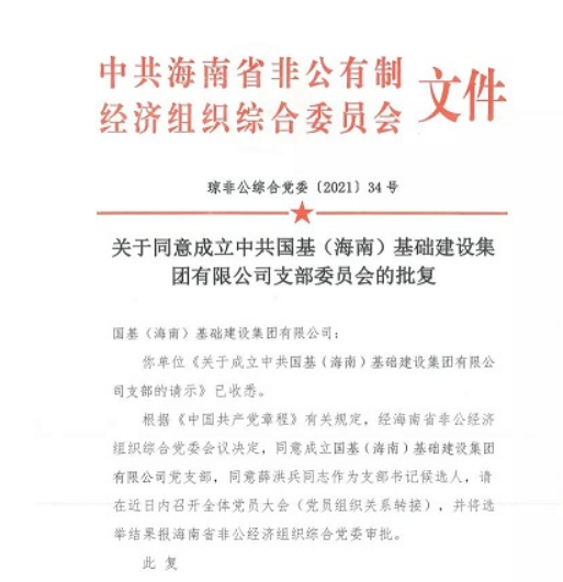 熱烈祝賀中共國基(海南)基礎(chǔ)建設(shè)集團有限公司支部委員會成立揭牌儀式圓滿成功!