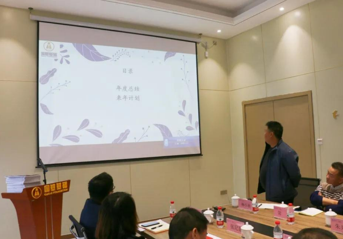 2021年1月8日,國(guó)基基礎(chǔ)集團(tuán)2020年度工作總結(jié)暨2021年度工作部署大會(huì)在集團(tuán)總部國(guó)基大廈召開(kāi)。集團(tuán)總裁丁慶磊、執(zhí)行總裁丁慶愿、聯(lián)席總裁吳英、首席人才官鮮雪嬌、分管副總兼海南區(qū)域總經(jīng)理鄧方圓、華南區(qū)域總經(jīng)理贠濤、分管副總兼西南區(qū)域總經(jīng)理賀黎君、分管副總丁春龍等集團(tuán)高層領(lǐng)導(dǎo)及各部門(mén)負(fù)責(zé)人近20余人出席會(huì)議,會(huì)議由集團(tuán)人力資源行政管理中心總監(jiān)王盛東主持,組織會(huì)議紀(jì)律與流程。